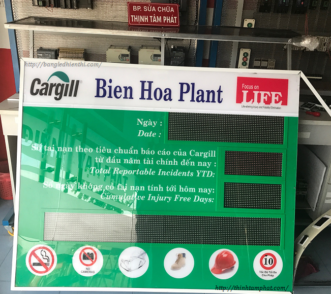 - Chức năng của bảng led hiển thị thông tin ngoài trời tại Cargill: Hiển thị thông tin về an toàn lao động tại nhà máy với các nội dung cụ thể như sau: