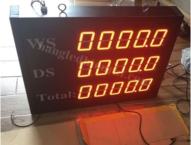 - Nội dung hiển thị trên bảng theo dõi năng suất led 7 đoạn được lập trình theo yêu cầu của khách hàng, gồm các chỉ số WS, DS và Total