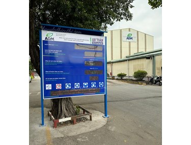 Bảng thông tin an toàn lao động bằng led điện tử lắp đặt theo yêu cầu của công ty ADM chi nhánh Thuận An, Bình Dương, gồm một bảng lắp tại cổng ra vào, một bảng lắp tại cửa khu văn phòng: