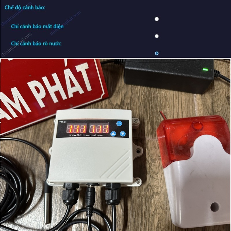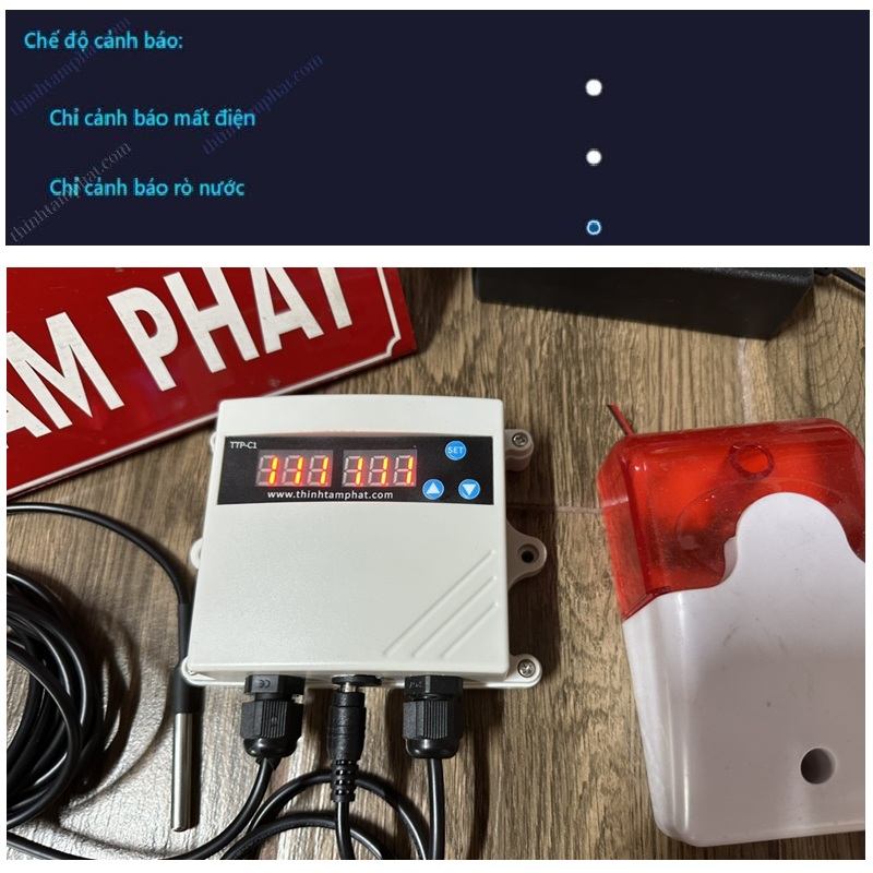 Bộ cảnh báo rò rỉ nước, mất điện, nhiệt độ và độ ẩm. Cảnh báo 4 trong 1