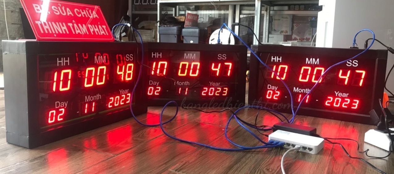 Chuyên các loại đồng hồ đồng bộ thời gian NTP - bộ đếm thời gian NTP qua máy tính và GPS bằng led 7 đoạn, với đa dạng kích thước và màu sắc để khách hàng lựa chọn. Bộ đếm thời gian NTP qua máy tính, GPS, internet, mạnh LAN, RS485... được cài đặt và lập trình theo yêu cầu của người dùng.