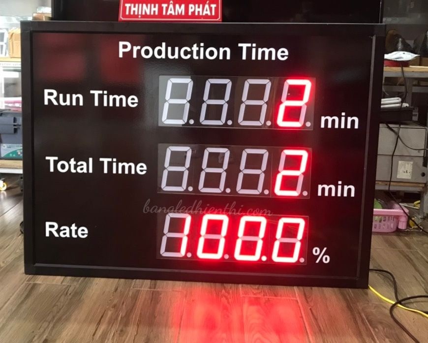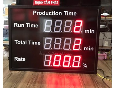 Bộ đếm thời gian sản xuất bằng led điện tử là thiết bị được sử dụng để đếm thời gian - đếm số giờ hoặc số phút (tùy đơn vị đếm) thực hiện sản xuất một đơn hàng. Tùy vào nhu cầu của người dùng mà bộ đếm thời gian sản xuất sẽ đếm xuôi hoặc đếm ngược, cũng như đếm theo đơn vị và số lượng phù hợp.