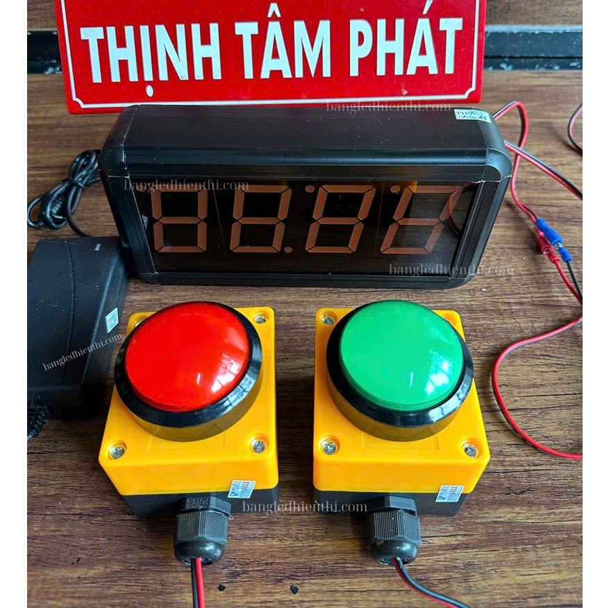 Bộ đồng hồ và nút nhấn Gameshow dưới đây được sản xuất và lập trình theo yêu cầu của khách hàng, gồm 1 đồng hồ đếm thời gian và 2 nút nhấn Gameshow màu đỏ và xanh lá cây, với các thông số kỹ thuật và đặc điểm chính như sau: