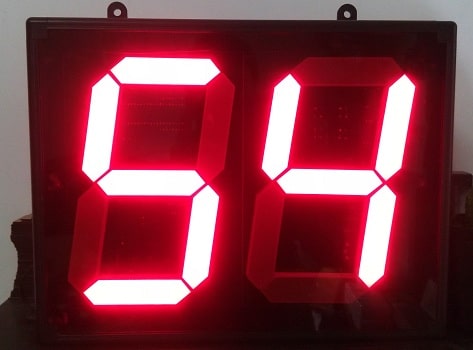 - Màn hình đồng hồ đếm ngược 2 số 8 inch có kích thước đủ lớn để hiển thị rất rõ trong những dịp lớn, các cuộc thi đấu thể thao, có lưu lượng người đông, cần quan sát từ xa