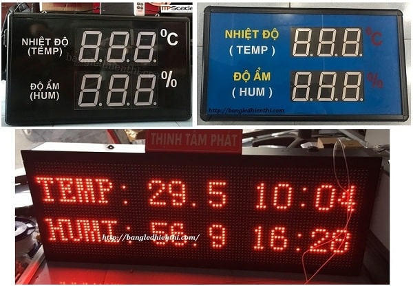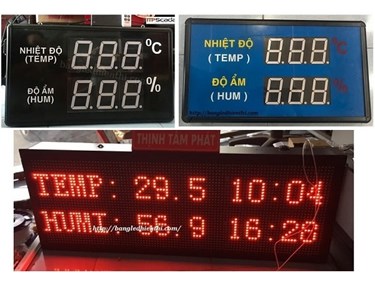 - Bảng điện tử led giám sát nhiệt độ độ ẩm với các màu sắc led hiển thị: màu trắng, xanh dương, xanh lá cây, vàng, đỏ, tím, hồng,…