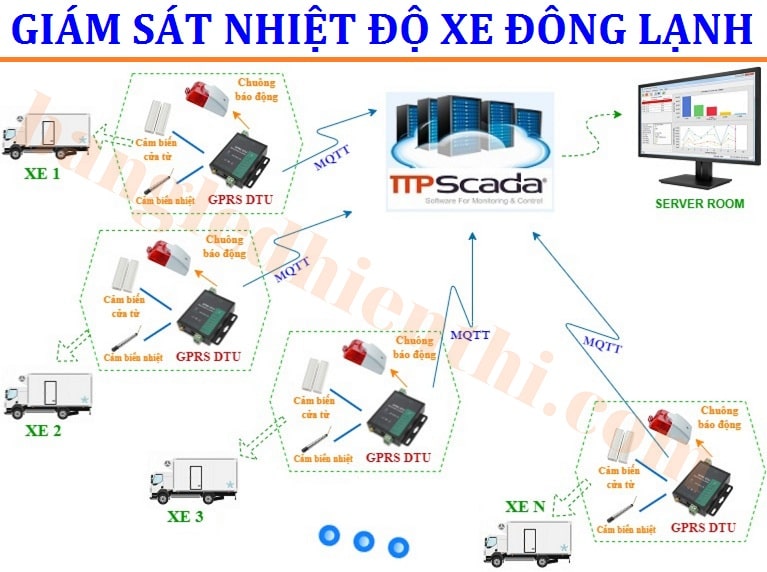 Một trong những mô hình hệ thống giám sát nhiệt độ xe đông lạnh TTPScada: