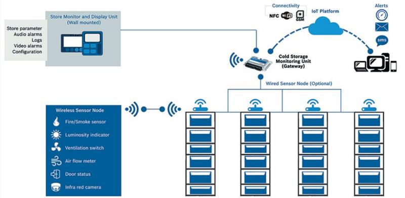 Hệ thống giám sát nhiệt độ kho lạnh được sử dụng đặc biệt rộng rãi trong các ngành cần có kho lạnh để bảo quản sản phẩm hoặc nguyên liệu như ngành sản xuất dược phẩm, hóa chất, thực phẩm,... Hệ thống này giúp người quản lý giám sát nhiệt độ kho lạnh và điều chỉnh ngay khi có cảnh báo quá nhiệt.