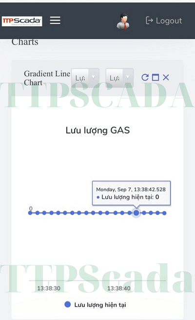 Một trong những giao diện phần mềm giám sát lưu lượng gas TTPScada xem trên điện thoại di động: