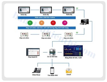- Hệ thống cảnh báo Andon không dây hiển thị nội dung lên bảng điện tử led hoặc màn hình LCD một cách trực quan, rõ ràng, thống kê theo nhiều cách, giúp người dùng giám sát số liệu dễ dàng.