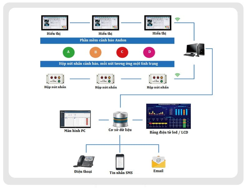 Giới thiệu về hệ thống cảnh báo Andon không dây (hệ thống quản lý sản xuất tinh gọn bằng ANDON):