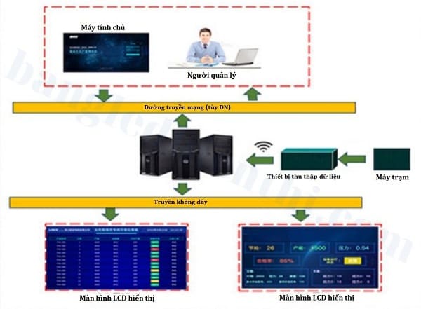- Mỗi trạm được lắp đặt một màn hình hiển thị LCD (kích thước tùy chọn) để xem dữ liệu tại chỗ