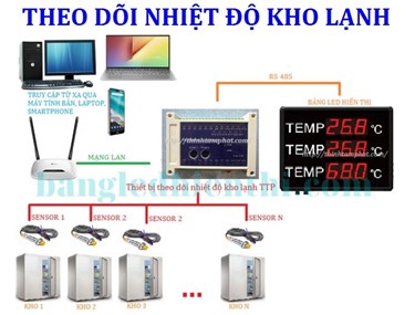 - Người dùng có thể theo dõi nhiệt độ kho lạnh từ xa qua internet bằng smarphone hoặc máy tính