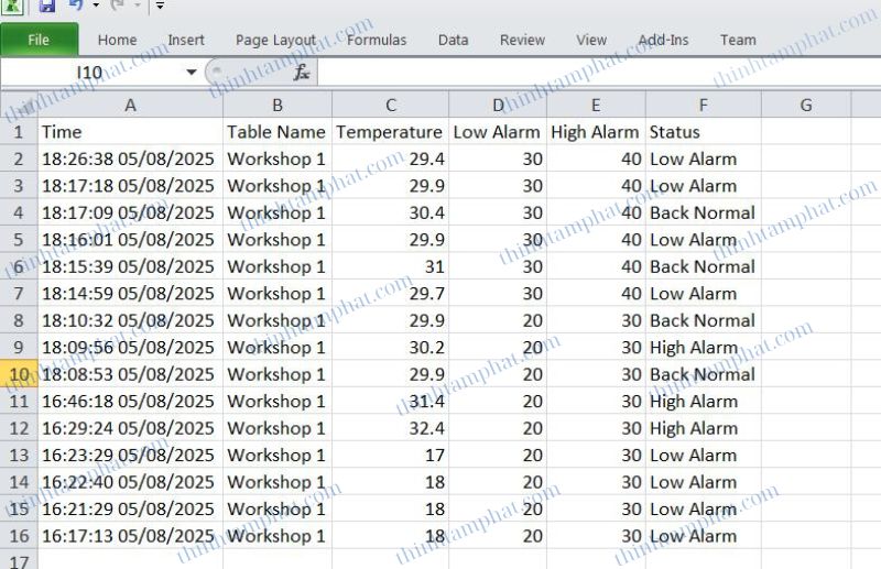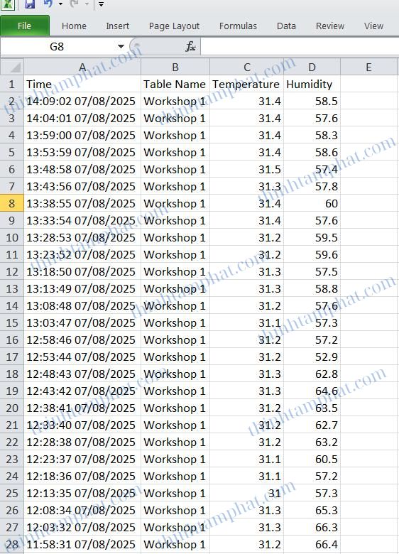 Xuất file Excel dữ liệu nhiệt độ độ ẩm